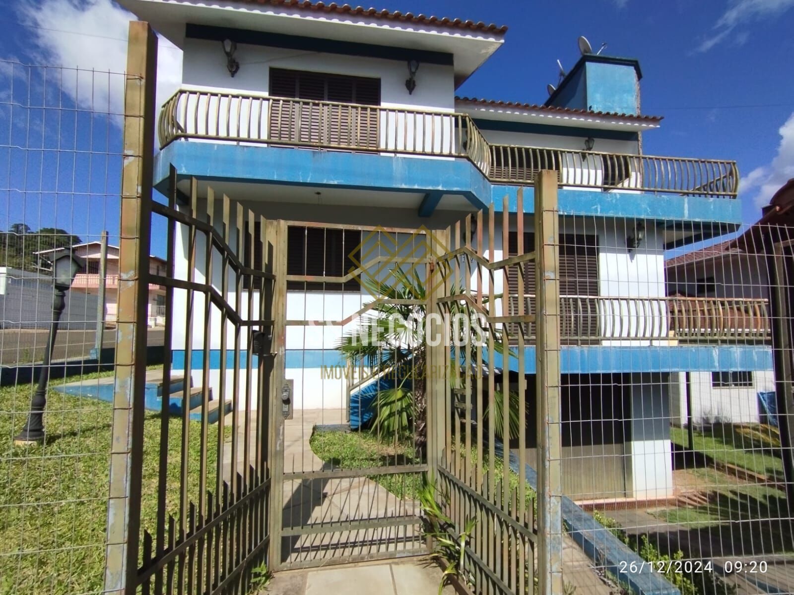 Terreno todo cercado por muros e portão eletrônico.